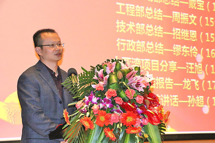 总结大会上,在公司副总裁戴宝先生激情洋溢的开场白后,副总裁钱洪涛先生、hth.com华体会智能董事兼蓝玛星际总经理朱勇杰先生、财务总监兼董秘李卓屏女士、副总裁戴宝先生、工程部总监周振文先生、技术部总监招继恩先生、行政部总监缪东伶女士、工程部副总监汪旭先生、总裁龙飞先生先后登台,分别做了2016年度工作总结。